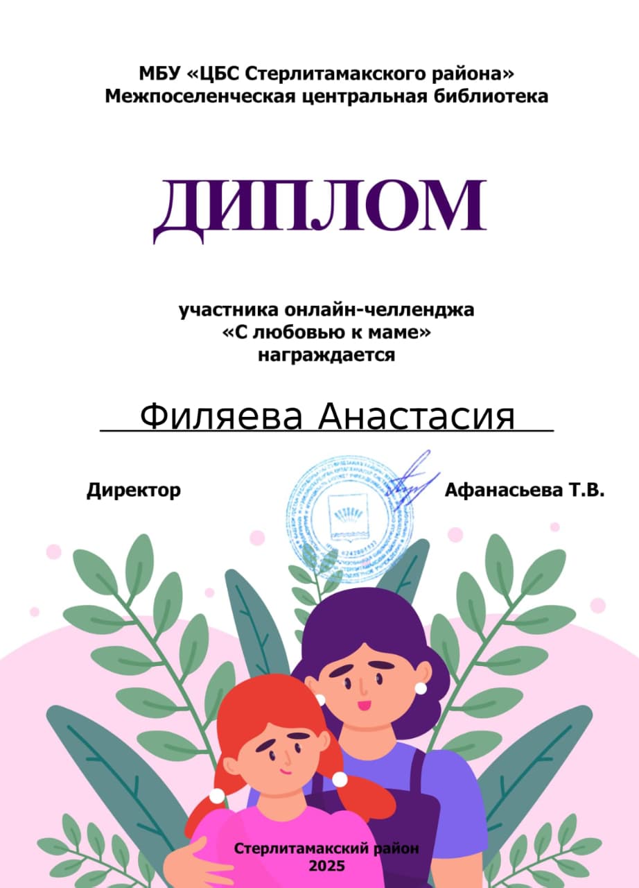 / Новости / Дипломы участников челленджа "С любовью к маме"