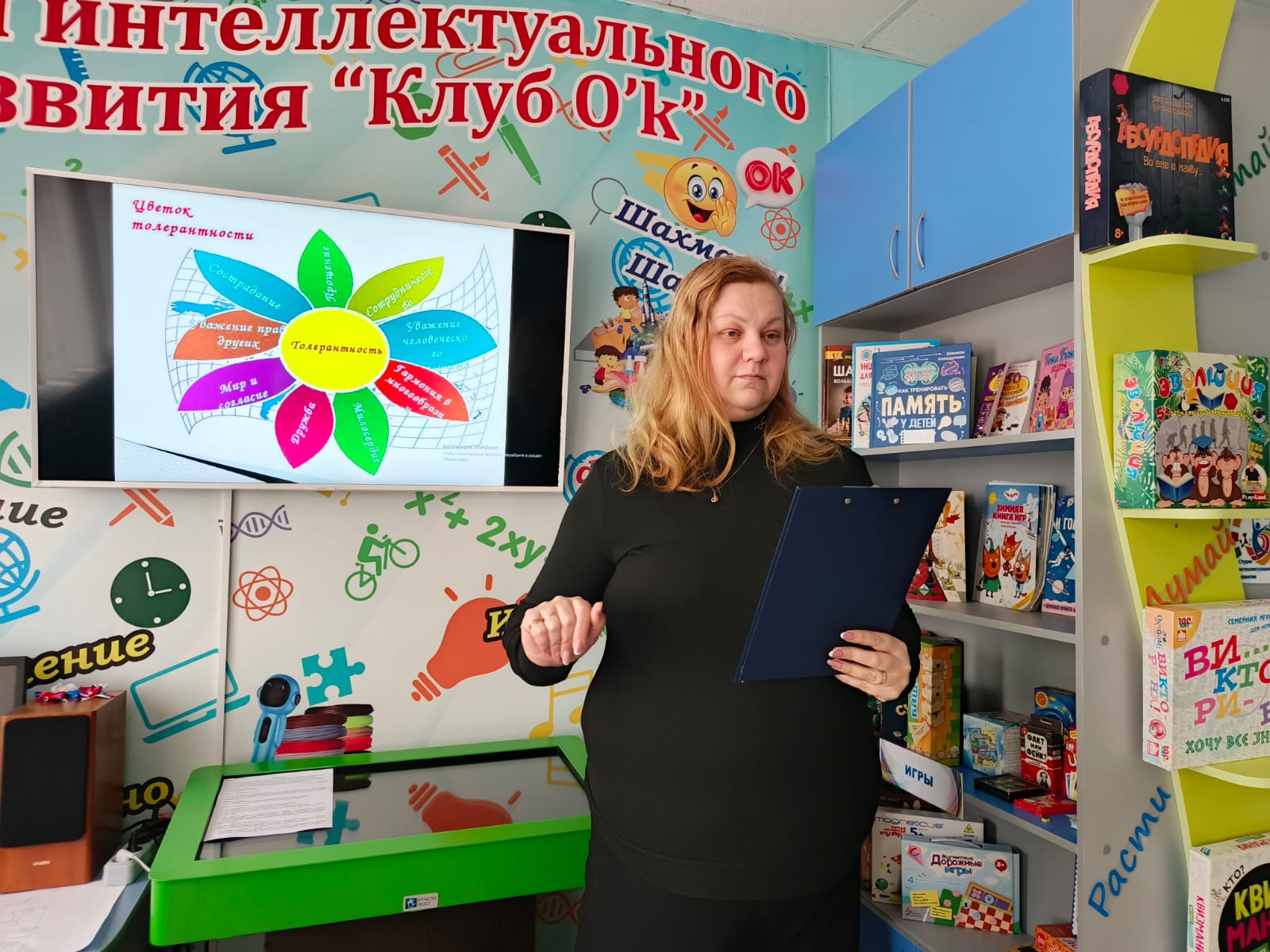 В Международный день толерантности в библиотеке прощёл информ – курьер “Пусть будет добрым твой мир”. А.В. Сухомлинский утверждал: «Культурный человек терпим к людям других национальностей, к инакомыслящим, не агрессивен». Ребята познакомились с такими понятиями: толерантность, уважение, сочувствие, сострадание, милосердие, доброта, дружба. Вместе выяснили, что все люди очень разные: носят разную одежду и прически, любят разные игры, владеют разными языками, имеют разные обычаи. И не смотря на эту непохожесть, дружат друг с другом.