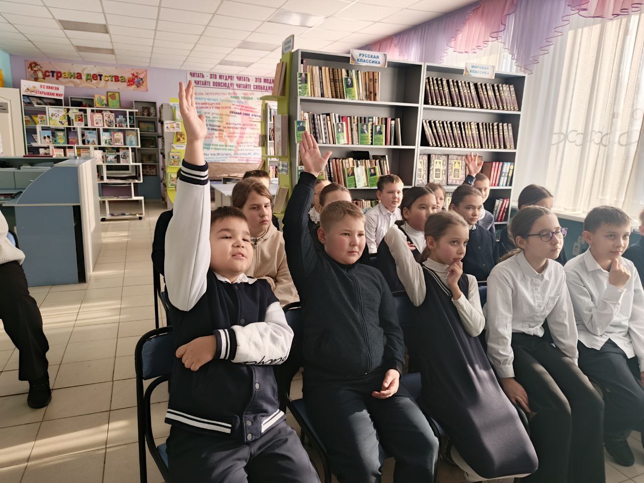 Дети с энтузиазмом погрузились в мир книг, отвечая на интересные вопросы о любимых героях и сюжетах. Викторина была наполнена весельем и дружеским соперничеством, а также позволила ребятам продемонстрировать свои знания о литературе.