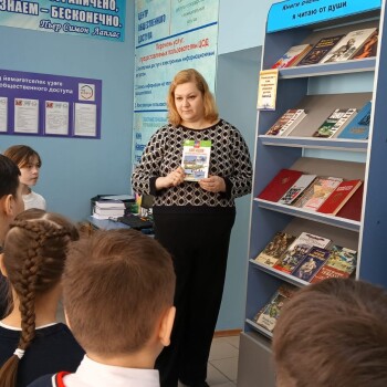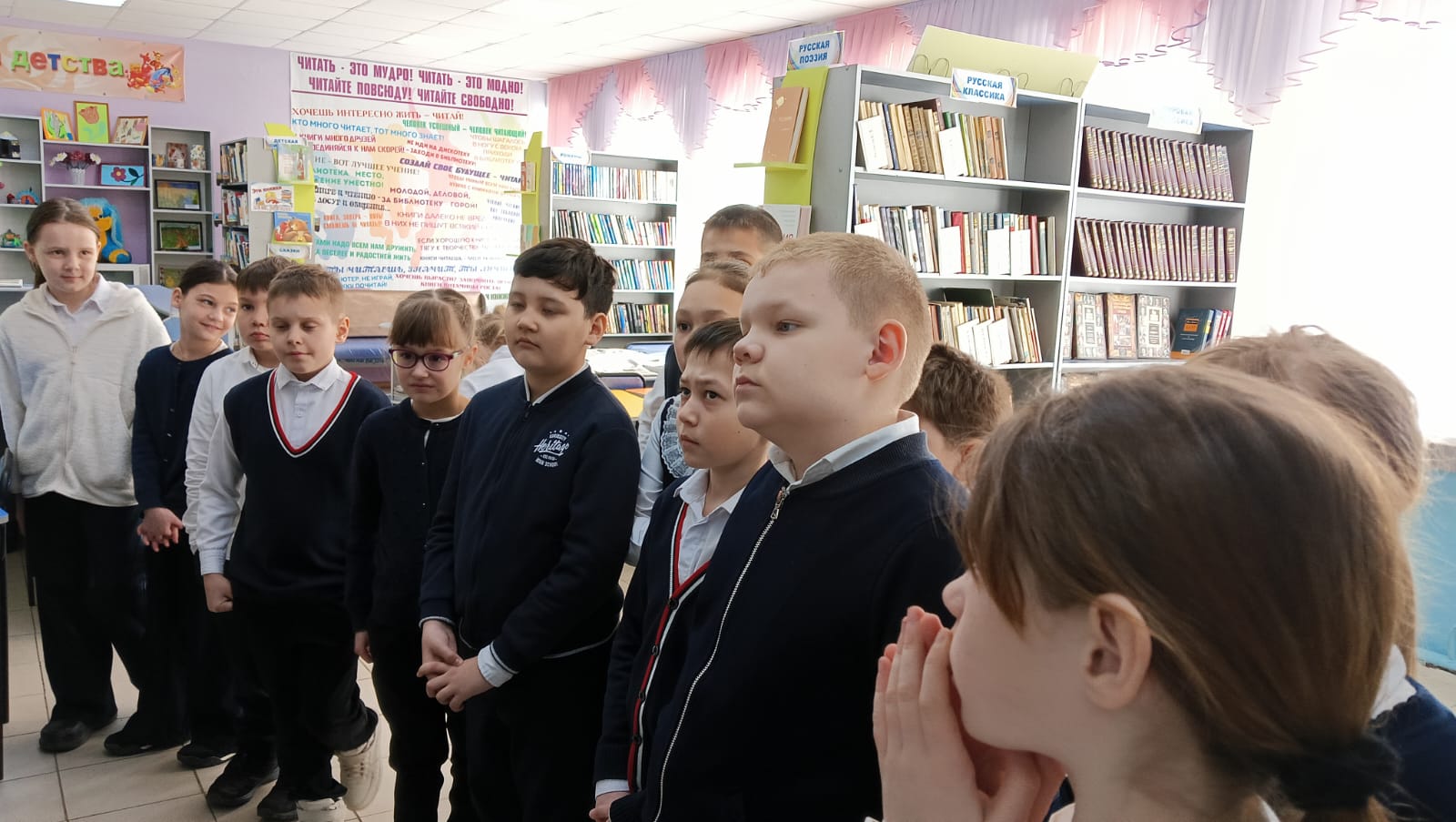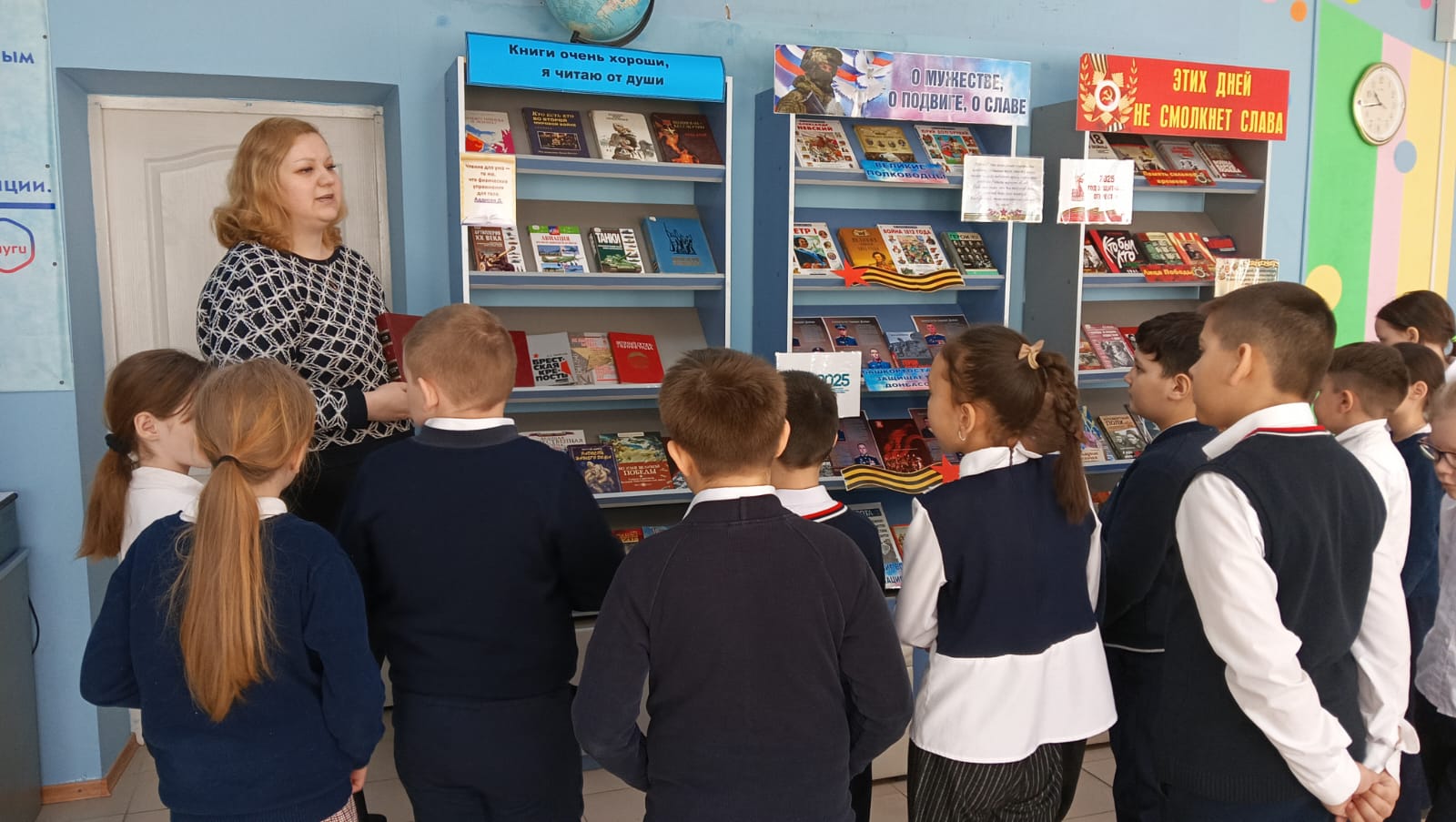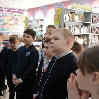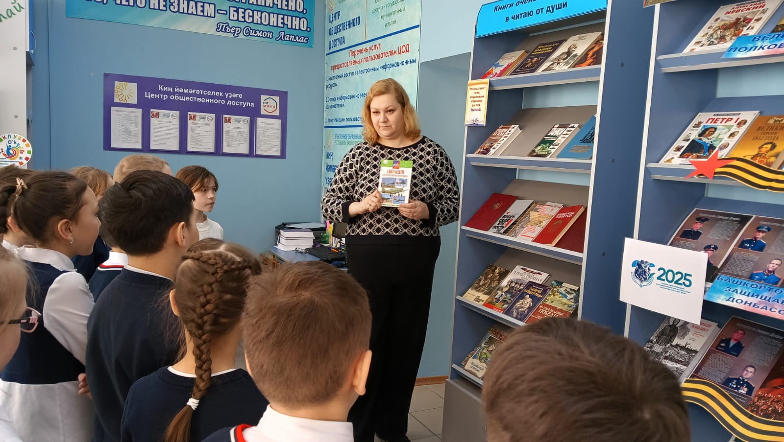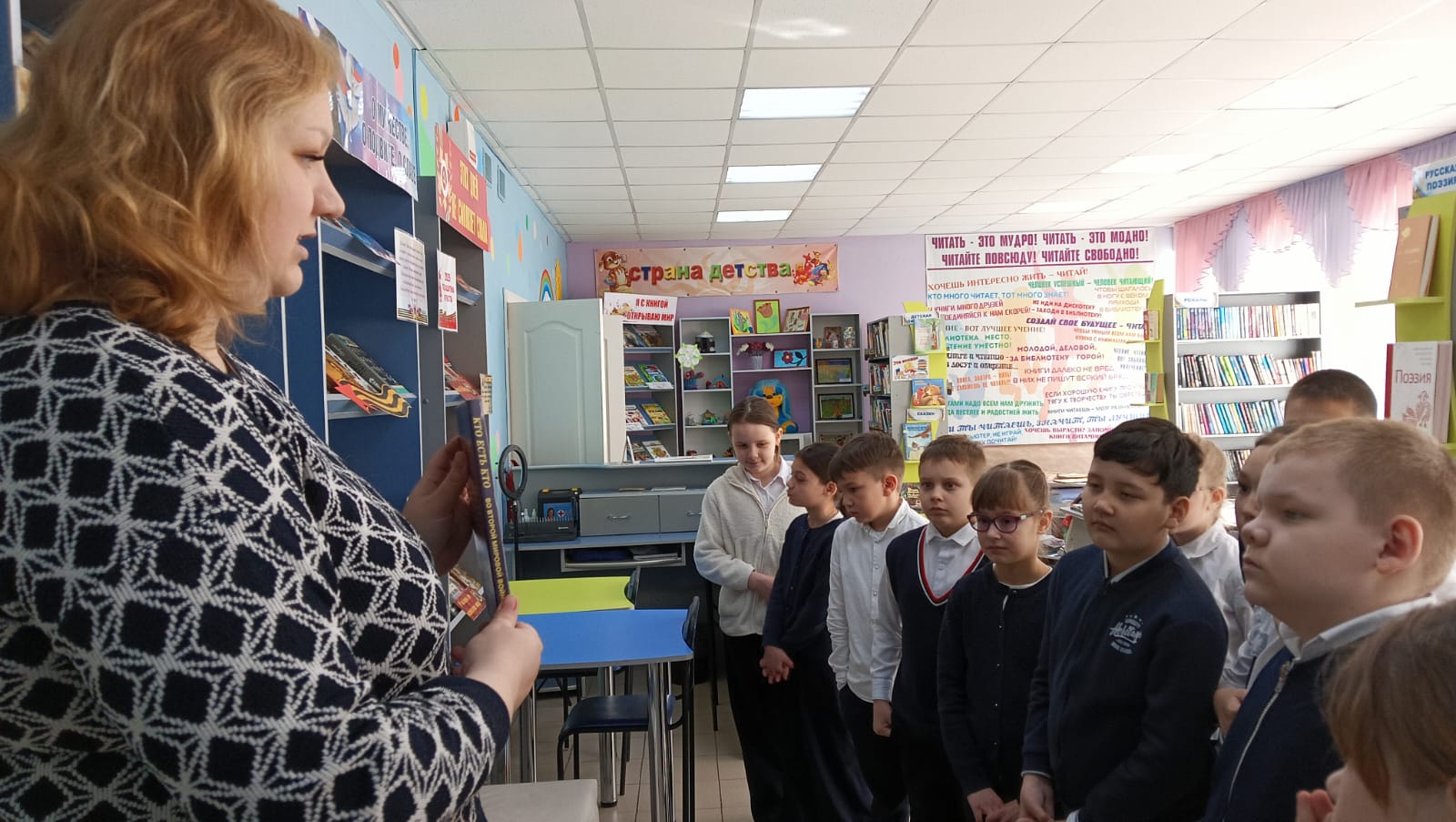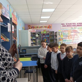 В рамках “Недели детской книги” 26 марта прошёл калейдоскоп “Книжкино царство – премудрое государство”, на котором школьникам была представлена книжная выставка книг “Память о войне нам книга оставляет”. Библиотекари рассказали о художественных, публицистических и энциклопедических книгах о Великой Отечественной войне, о героическом подвиге всего народа нашей многонациональной страны, героях войны и тружениках тыла, о детях-героях, документальные свидетельства участников военных событий и воспоминания фронтовиков, о книгах о подвигах народа, вписавших золотые страницы в историю Великой Отечественной. В числе художественных произведений – рассказы, повести, стихи для детей известных авторов, стихи поэтов-фронтовиков.