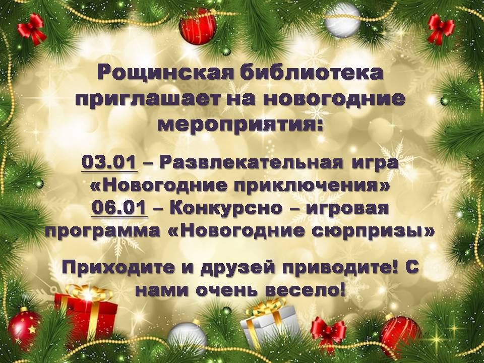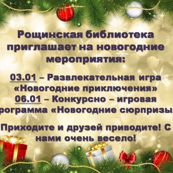 Приглашаем вас в нашу библиотеку на увлекательные новогодние мероприятия! Этот волшебный период полон чудес и сюрпризов, и мы подготовили для вас интересную программу.