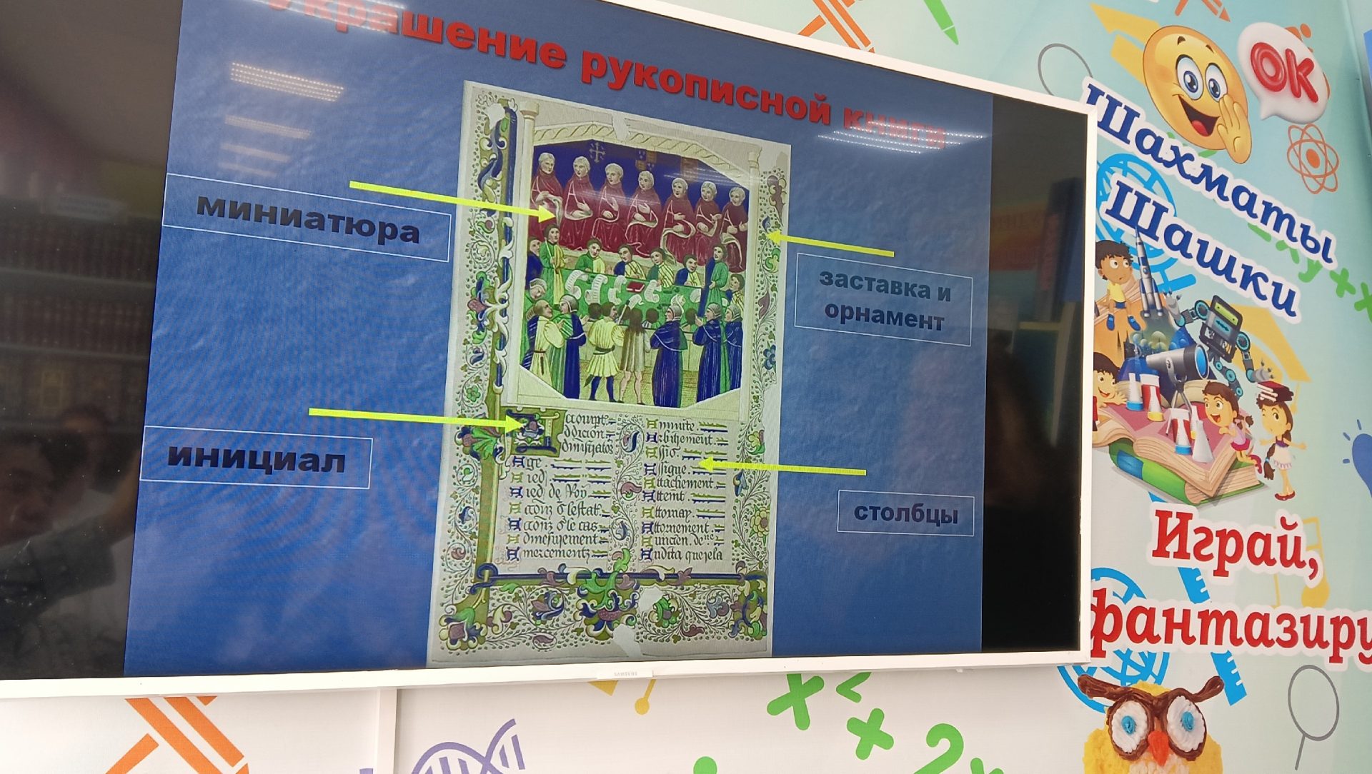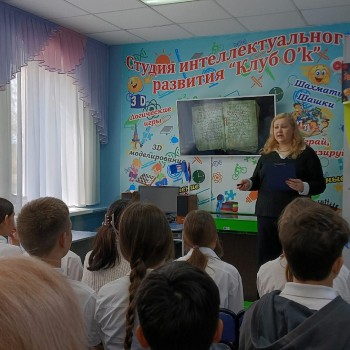 Библиотекарь рассказала участникам мероприятия об истории и традициях этого праздника, о том, как создавались первые книги, и о современных технологиях их производства. Вместе с ведущим ребята побеседовали о роли книги в семье и обществе, и почему так важно авторское право для писателей. Библиотекарь рассказала и показала памятники книгам, которые есть по всему миру.