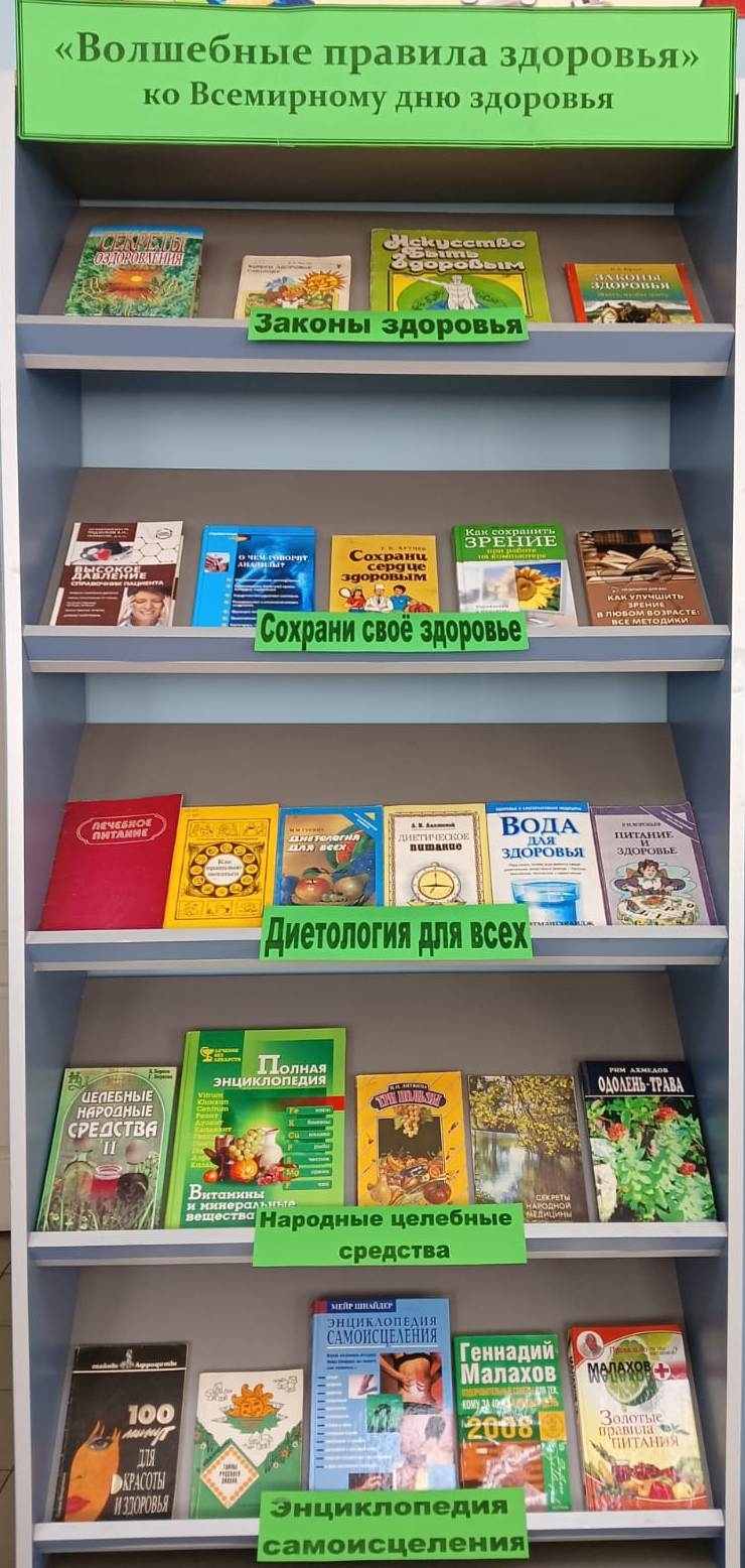 В конце зимы и весной многие чувствуют необычную усталость, апатию и подавленность. Зачастую к этому добавляются ухудшение состояния кожи и волос, боли в суставах. В Рощинской библиотеке состоялась презентация выставки – совета “Десять заповедей здоровья”. Читатели смогли взять для себя какую – либо интересующую информацию для оздоровления организма, правильного питания, правильного применения витаминов, необходимых для жизни и здоровья человека. Также были представлены книги по восстановлению зрения, давления и книги по нетрадиционным способам лечения.