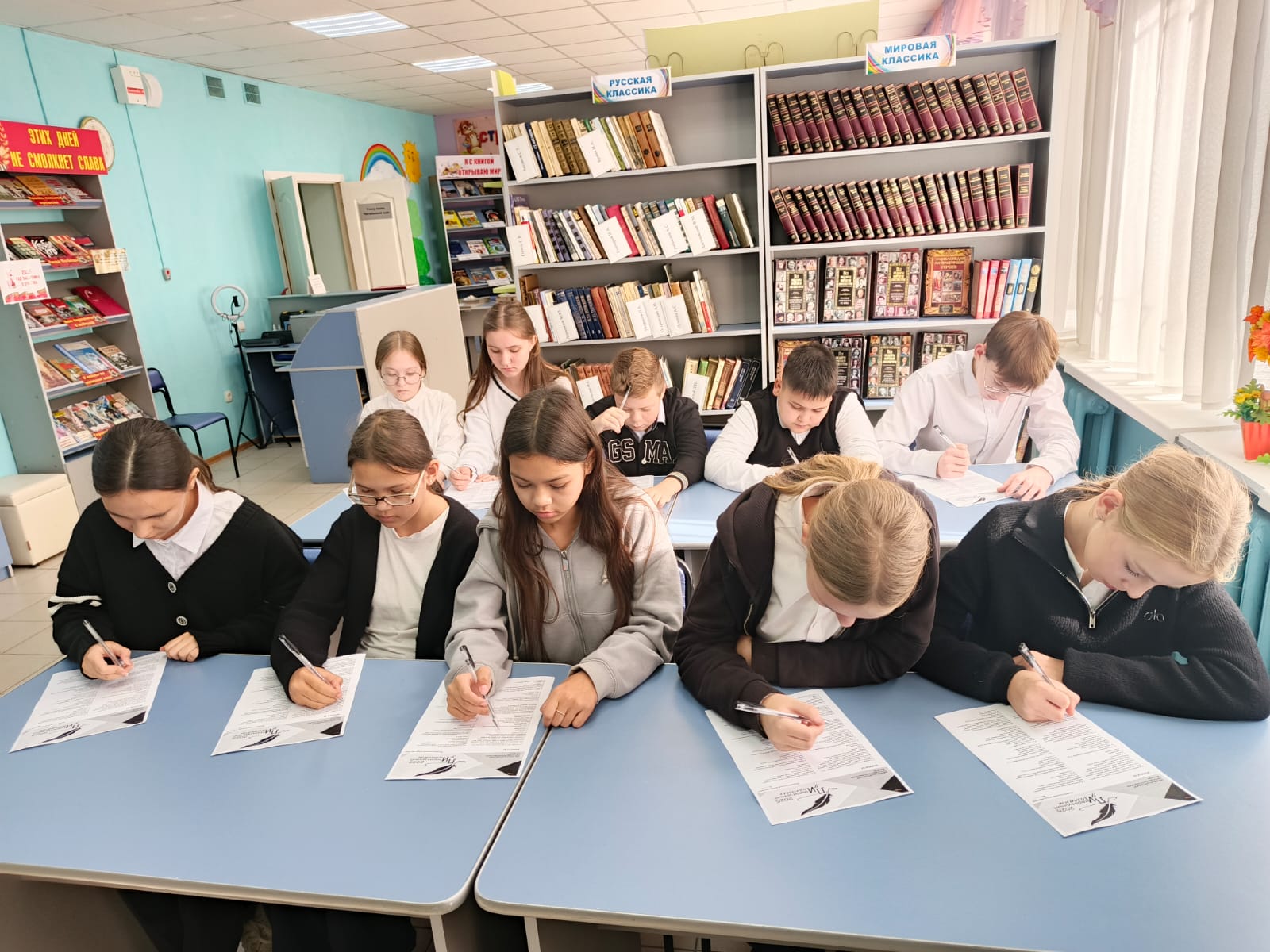 Учащиеся школы приняли участие в увлекательном и познавательном мероприятии — литературном диктанте, который состоялся в нашей библиотеке! Это была отличная возможность проверить свои знания о русской литературе, погрузиться в мир слов и насладиться атмосферой творчества.