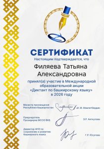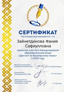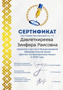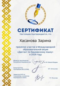 / Новости / Сертификаты об участии в Международном диктанте по башкирскому языку Сертификаты об участии в Международном диктанте по башкирскому языку